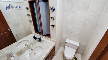 Baño para visitas con mármol y one piece