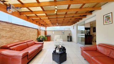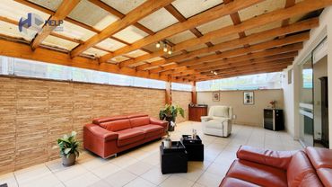 Departamento en primer piso con amplia terraza con sol y sombra de madera y pisos de laja