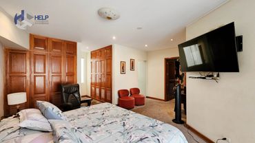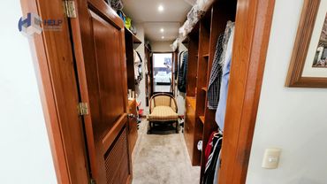 Dormitorio secundario con closet, baño incorporado con tablero de mármol y ducha